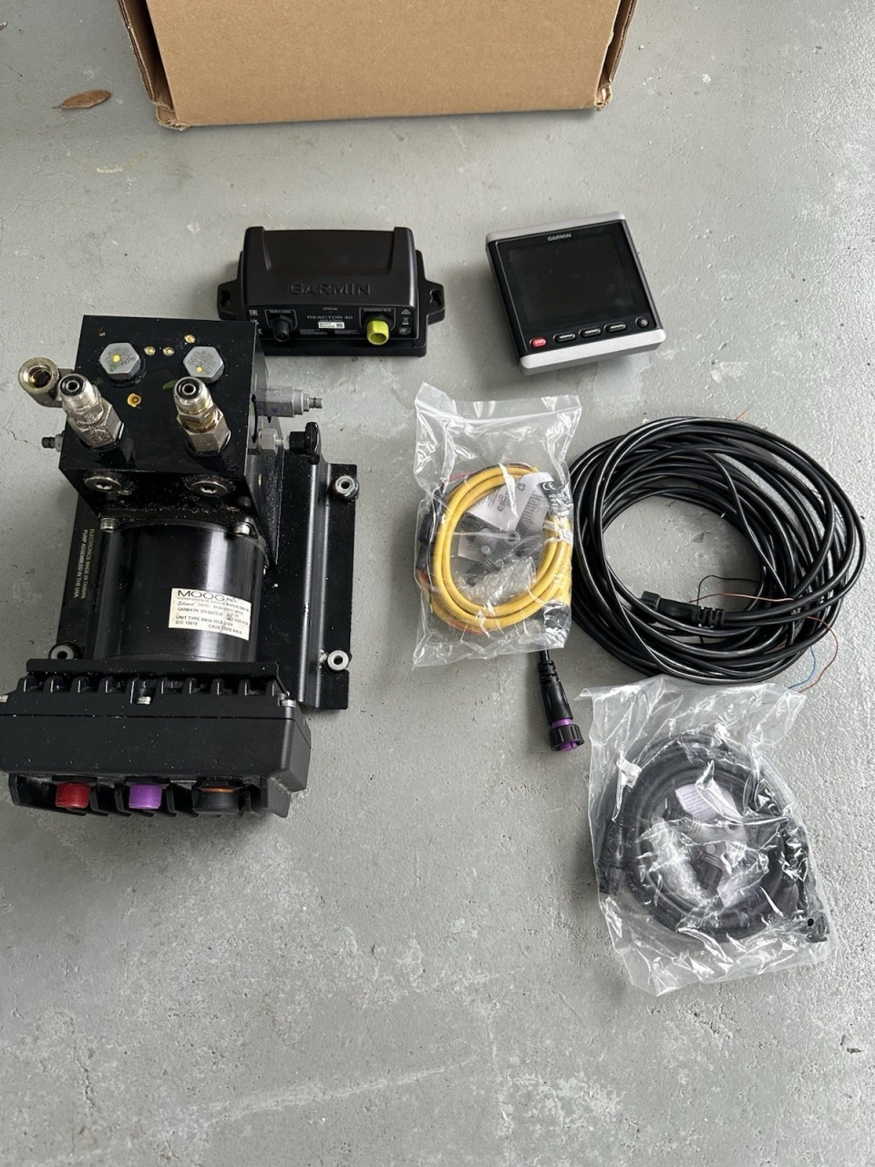 Garmin autopilot with smart pump v1 including GHC 20 and CCU computer with power cables and nema and cable from pump to CCU everything works properly great autopilot for less money.
